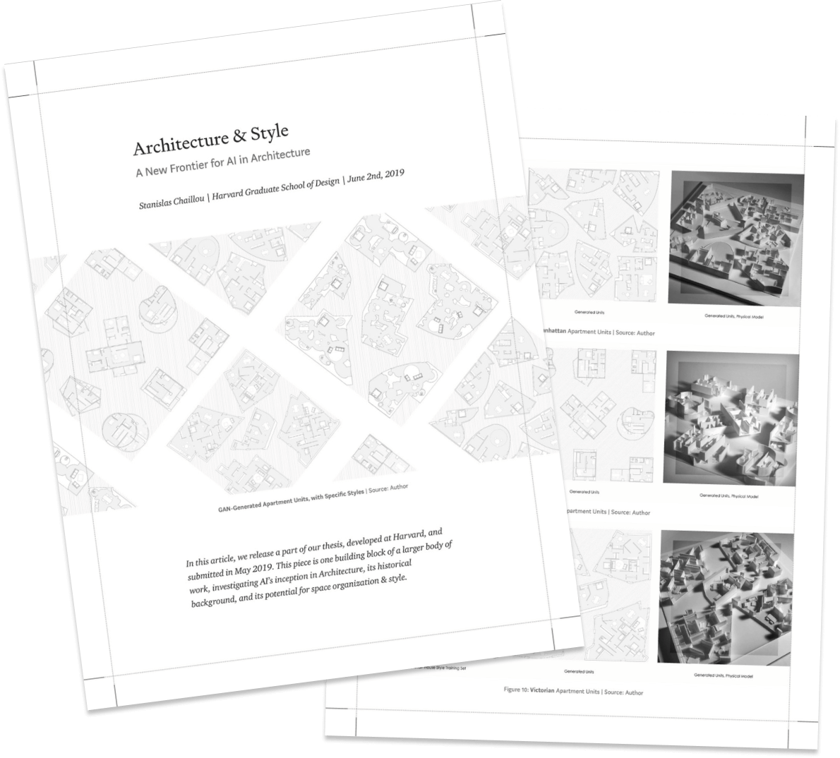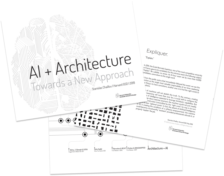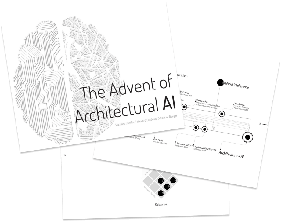 Among the factors that will leave a lasting impact on our discipline, technology certainly is one of the main vectors at play. The inception of technological solutions at every step of the value chain has already significantly transformed Architecture. The conception of buildings has in fact already started a slow transformation: first by leveraging new construction techniques, then by developing adequate softwares, and eventually today by introducing statistical computing capabilities (including Data Science & AI). Rather than a disruption, we want to see here a continuity that led Architecture through successive evolutions until today. Modularity, Computational Design, Parametricism and finally Artificial Intelligence are to us the four intricate steps of a slow-paced transition. Beyond the historical background, we posit that this evolution is the wireframe of a radical improvement in architectural conception.